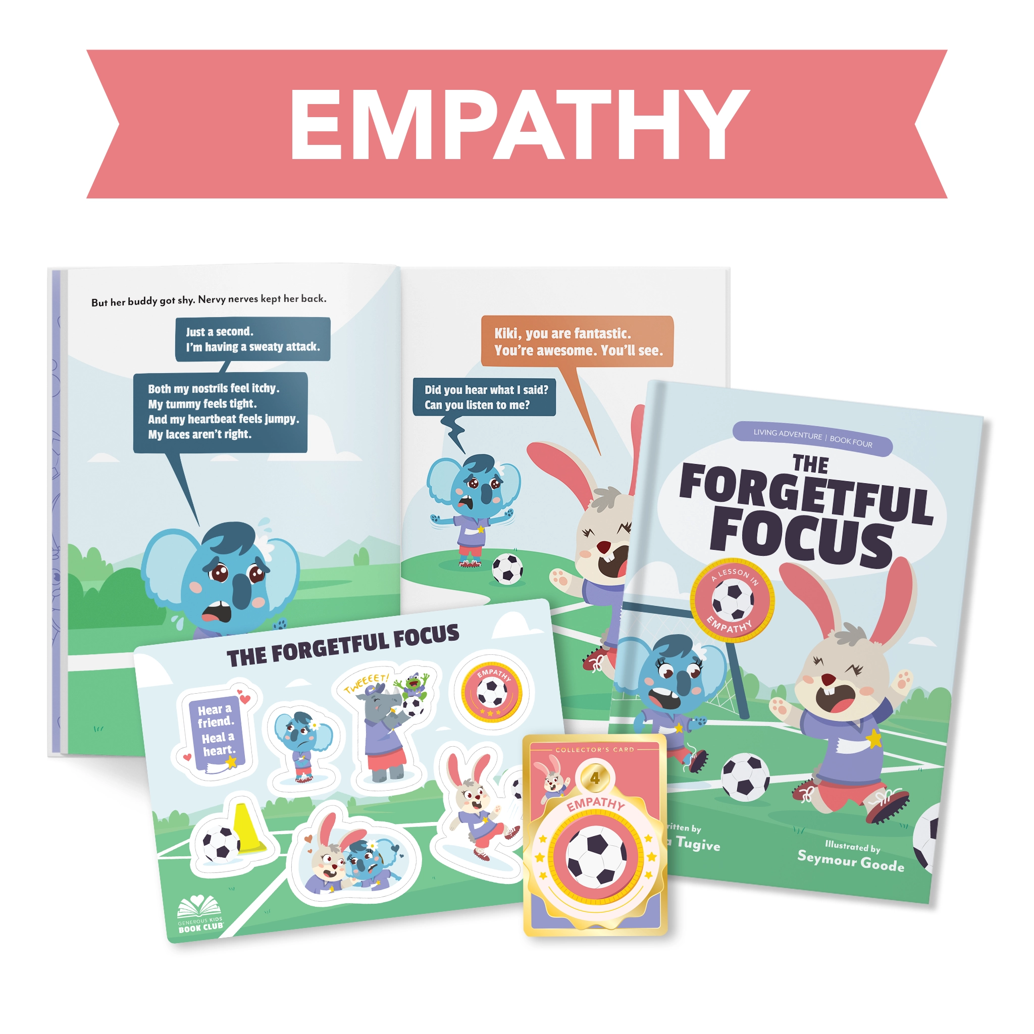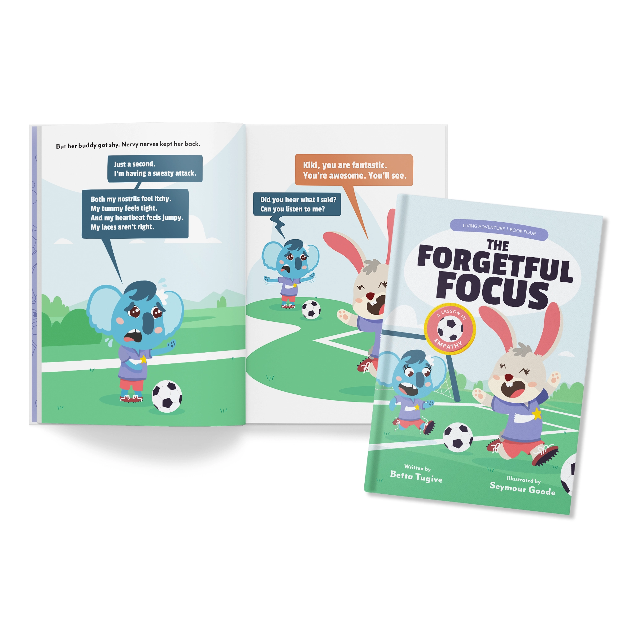 Join our friend Bonnie the Bunny, who is crushing her soccer tryout. Her pal Kiki, on the other hand, is so nervous that she has a horrible tryout. Bonnie doesn’t notice and focuses on herself. But when she finally listens to Kiki and imagines what that experience would be like, she learns how to empathize. Taking the time to listen can heal a friend’s heart.
